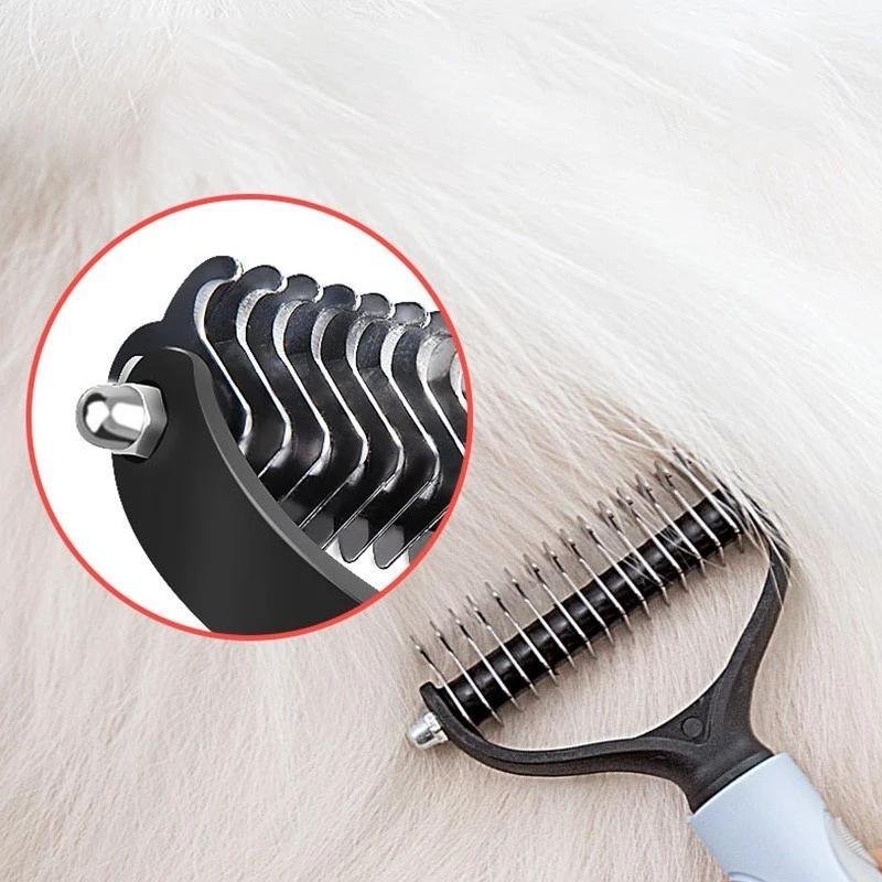 Professional Pet Deshedding Brush 2 Sided Dematting Dog Comb Cat Brush Rake Puppy Grooming Tools Undercoat Shedding Flying Hair - red - L
