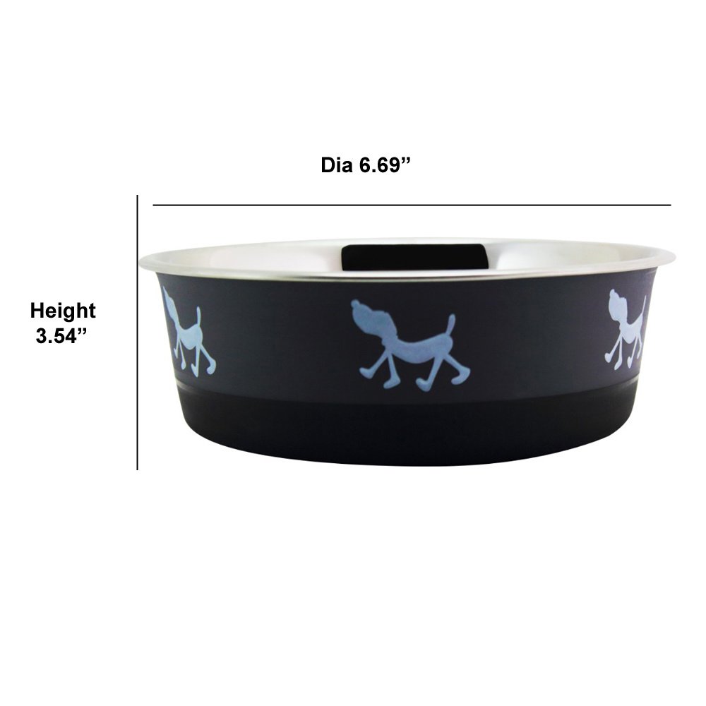 Stainless Steel Pet Bowl with Anti Skid Rubber Base and Dog Design, Gray and Black - as Pic